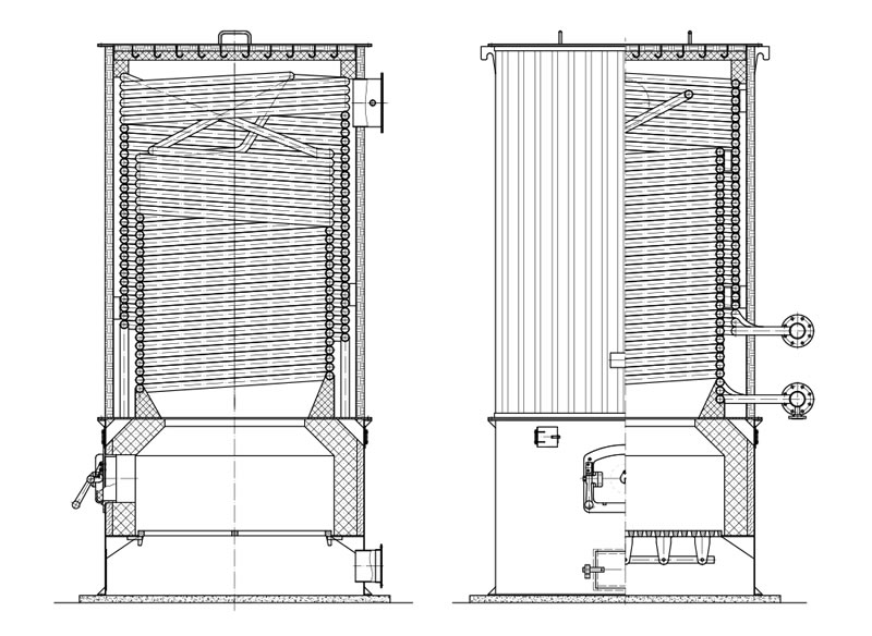爐體內、外螺旋盤管采用多頭、小管徑鋼管制成,盤管的熱膨脹性能好、應力低,安全可靠。