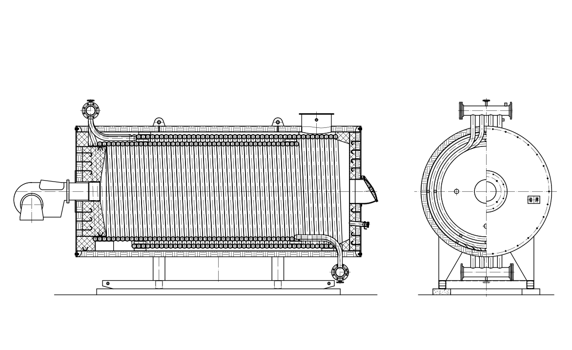 7、流程設計:煙氣三回程,介質流經內外盤管,流速均勻,運行安全、穩定。